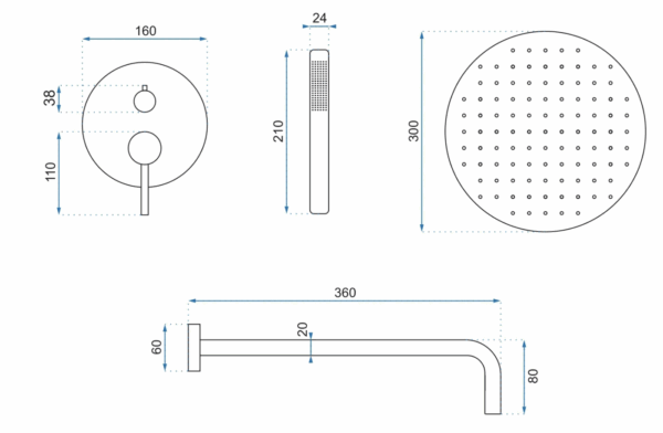 SET DE DUȘ INCASTRAT LUNGO GOLD BRUSH+BOX